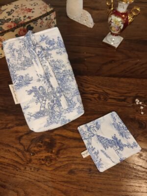 Pochette à livre fleurs bleues
